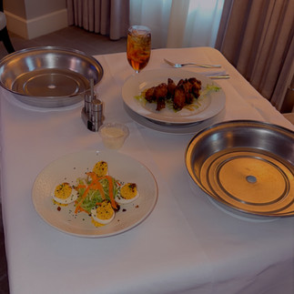 The very first thing on my agenda was room service. I’d already enjoyed a solid breakfast earlier at home, so I kept lunch light but indulgent. I ordered the honey butter lemon pepper buffalo wings with blue cheese dressing, along with deviled eggs, and let me tell you, it was so good. I slipped into my boss-lady robe and indulged like the queen I am. (Self Care)