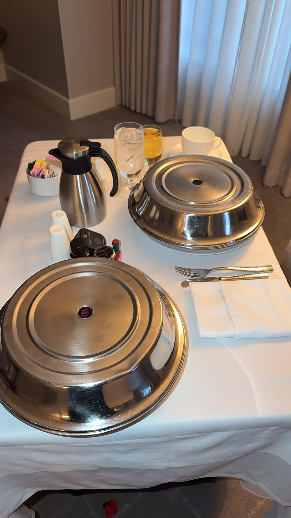 Every time room service arrived, they brought in this adorable mini rolling table for me to eat on, which somehow made the whole experience feel extra luxurious. It was such a small detail, but it added to that “fancy hotel life” feeling I was fully leaning into.